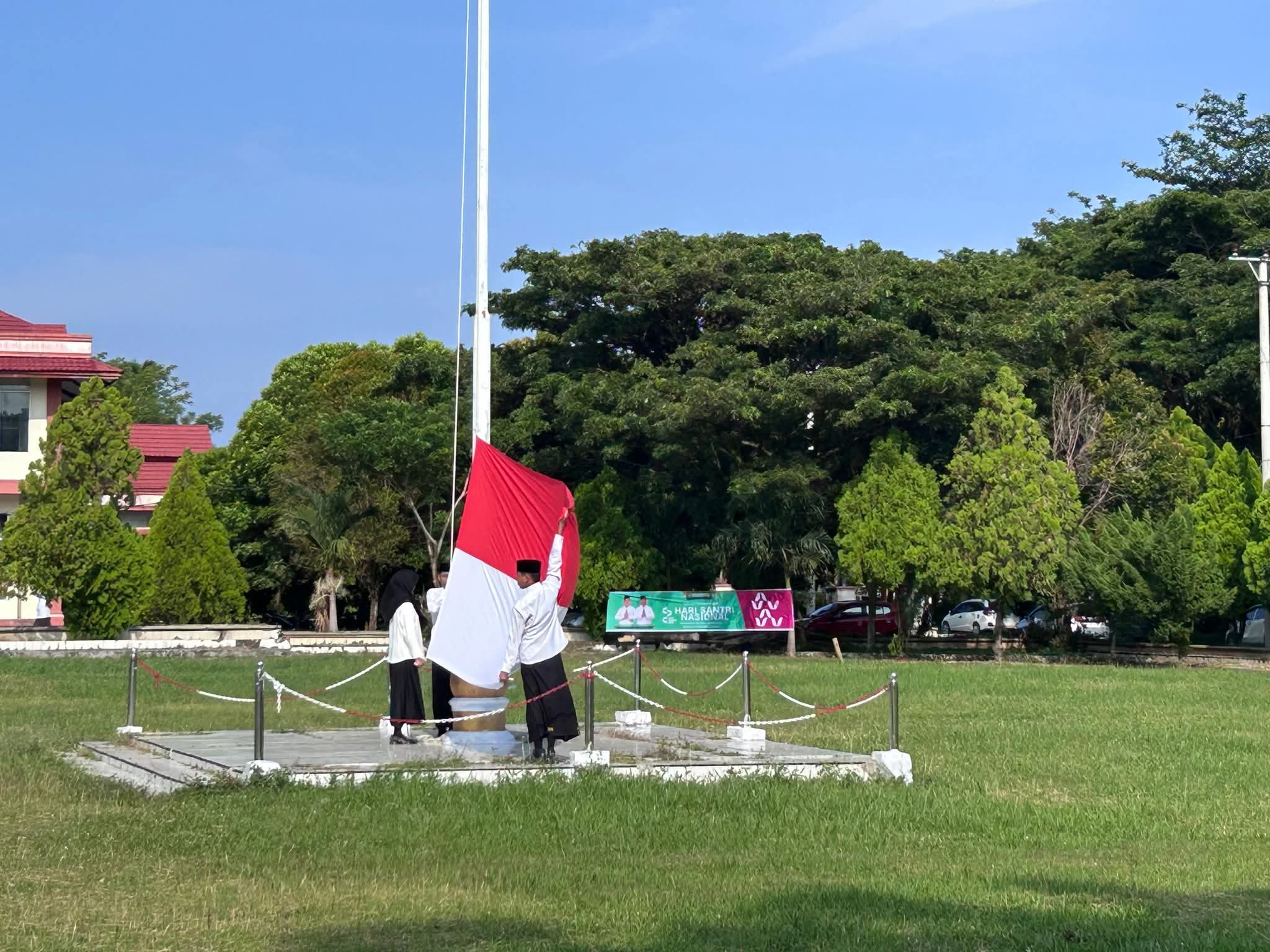 Seluruh civitas madrasah menghadiri upacara peringatan HSN yang diselenggarakan secara gabungan di Lapangan Upacara Kantor Bupati Bolaang Mongondow.